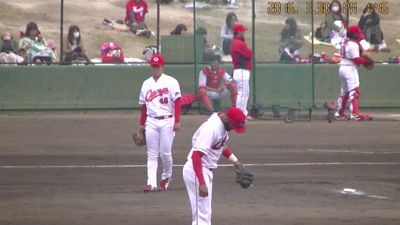 4表 カープ、投手は戸田にかわり、高橋 樹也 背番号46