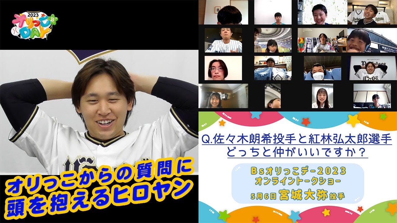 5月6日に実施された、「Bsオリっこデー2023」オンライントークショー。今回は宮城大弥投手が登場!画面を通してオリっこ達の質問に答えてくれました。
