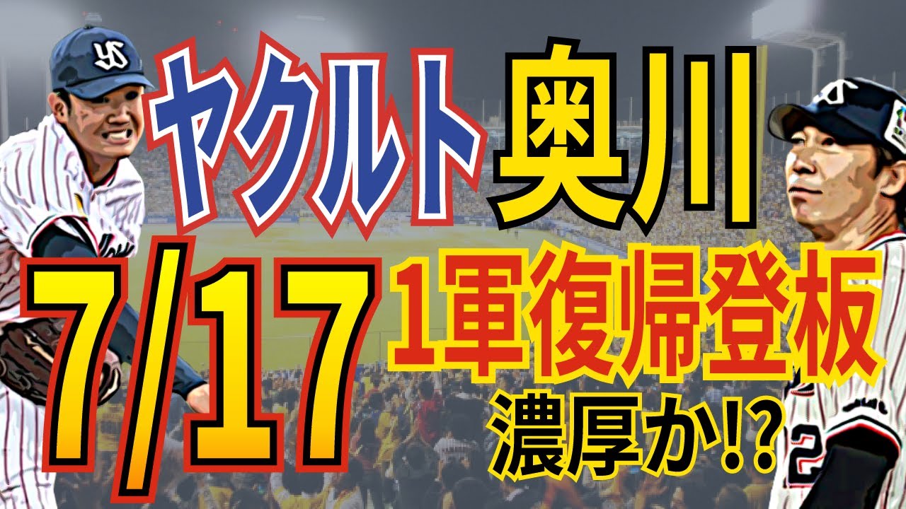 【ヤクルト奥川選手の1軍復帰登板は7/17?】