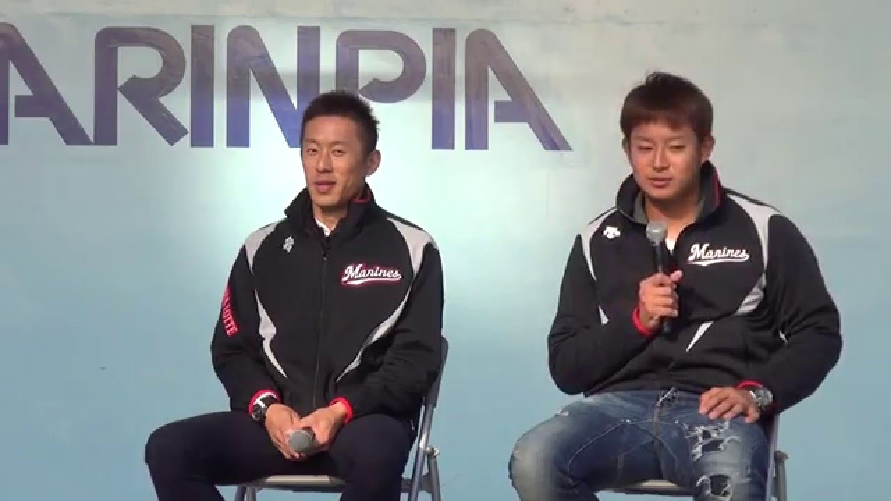 2015.12.5、マリンピア稲毛海岸で行われた千葉ロッテマリーンズ岡田幸文と吉田裕太のトークショー。