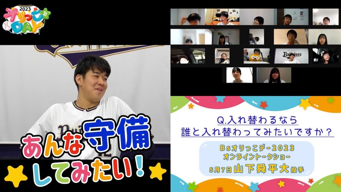 5月7日に実施された、「Bsオリっこデー2023」オンライントークショー。今回は山下舜平大投手が登場!画面を通してオリっこ達の質問に答えてくれました。