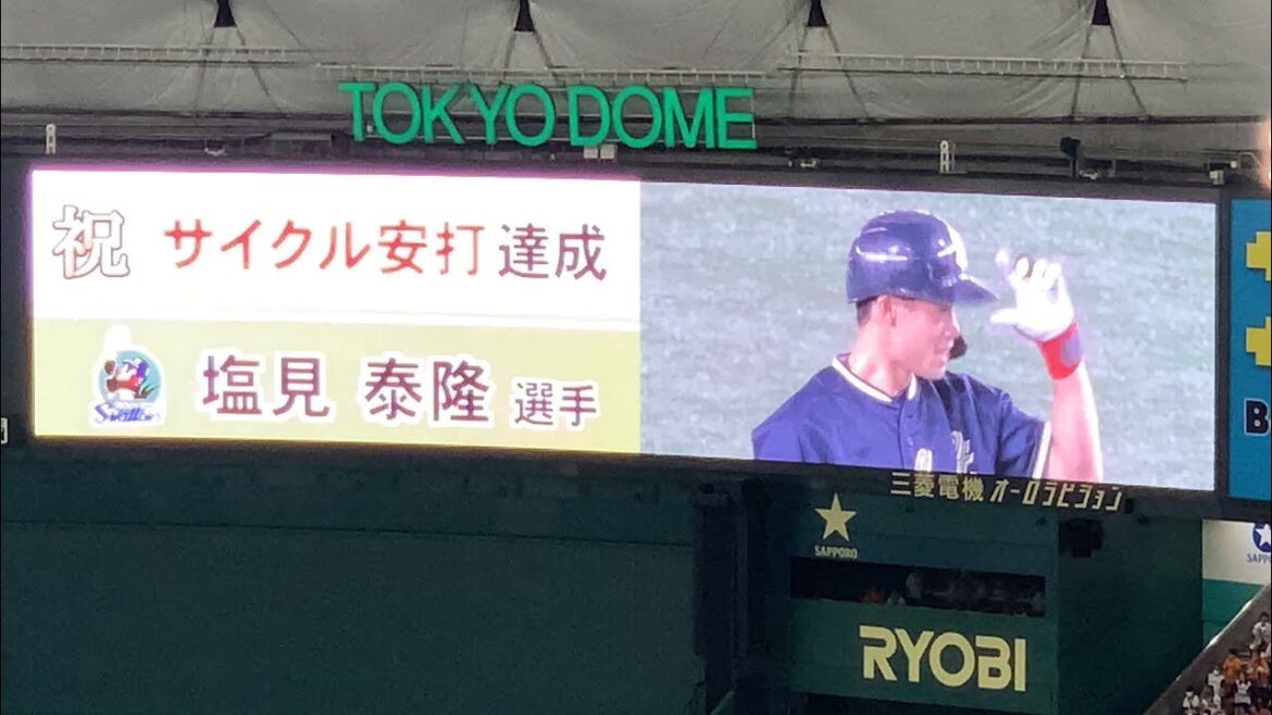 塩見泰隆、サイクル安打を達成してドーム内が暖かい拍手に包まれる!