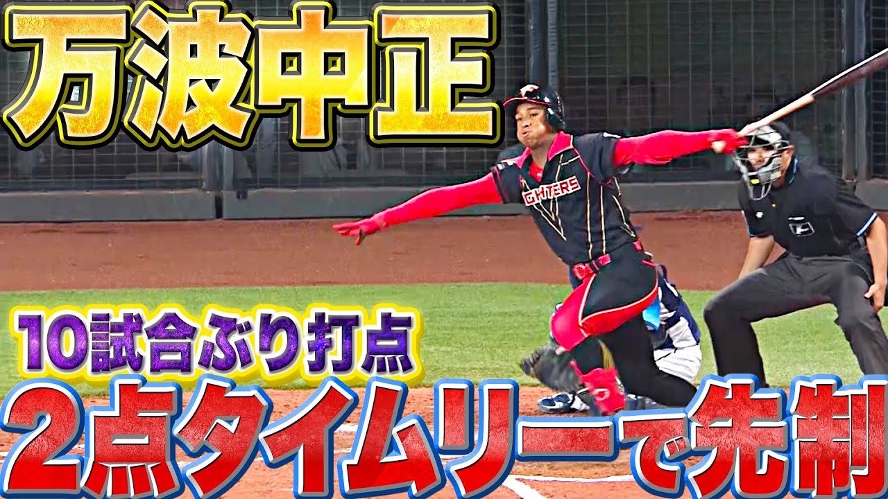 1アウト満塁のチャンスで北海道日本ハム・万波中正がレフトライン際へのタイムリー2ベースヒットで先制に成功。