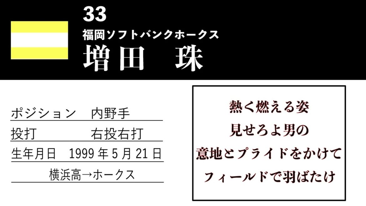 背番号33 増田珠選手の応援歌を【Synthesizer V】 小春六花 AIさんに歌ってもらいました。 #プロ野球Fukuoka SoftBank Hawksホークス増田増田珠小春六花応援歌福岡ソフトバンクホークス NPBHUB.COM | The Fanbase of Nippon Baseball & Nippon Professional Baseball