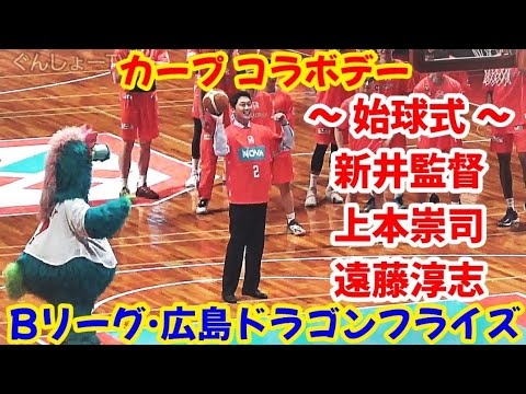 20221214 カープ新井貴浩 監督、上本崇司、遠藤淳志がBリーグ広島ドラゴンフライズのバスケットボール始球式に登場! ~ カープコラボデー