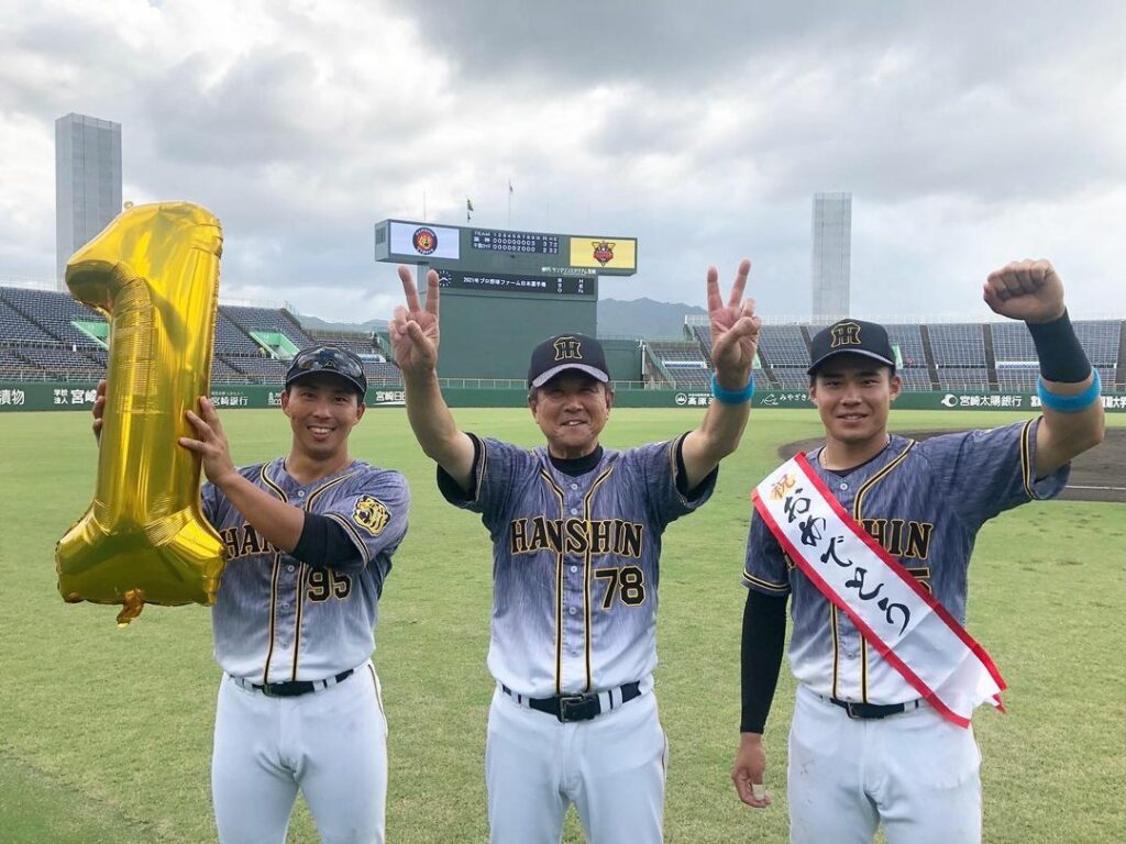 ファーム日本選手権!2点リードを許していた9回に見事な逆転でファーム日本一に輝きました✨2安打同点タイムリーで最優秀選手に選ばれた遠藤選手と2安打、3出塁で優秀選手賞に選ばれた片山選手!#ファーム日本一✨#平田勝男ファーム監督#遠藤成 選手 #最優秀選手賞#片山雄哉 選手 #優秀選手賞#優勝#阪神タイガース #挑超頂 Hanshin TigersHanshin Tigers Official MediaNPB Central LeagueOfficial Mediaファーム日本一✨優勝優秀選手賞平田勝男ファーム監督挑超頂最優秀選手賞片山雄哉遠藤成阪神タイガース NPBHUB.COM | The Fanbase of Nippon Baseball & Nippon Professional Baseball