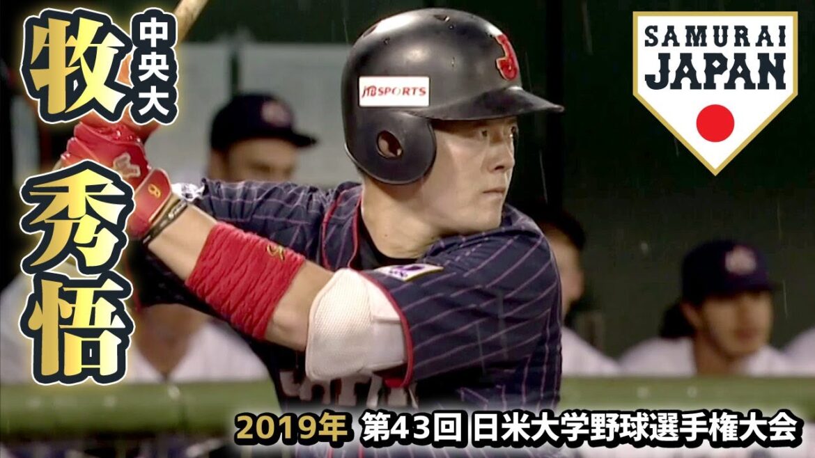 2020年のプロ野球ドラフト会議にて横浜DeNAベイスターズから2位指名された牧秀悟選手(中央大)の貴重な侍ジャパン選出時の映像。牧秀悟選手は大学代表に選出され、2019年の日米大学野球選手権大会に出場しました。