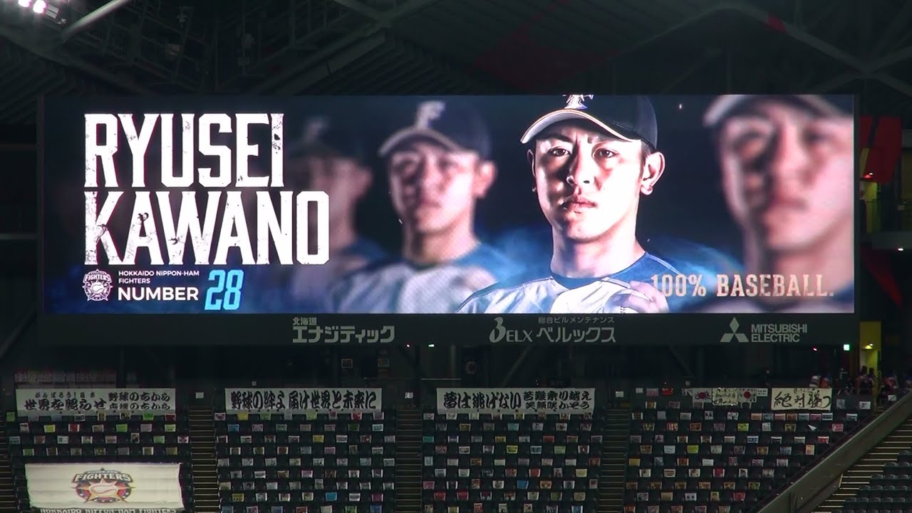 2020年7月19日、札幌ドームでの北海道日本ハムファイターズvs千葉ロッテマリーンズ第6回戦にて、試合前のファイターズ スタメン発表シーンです