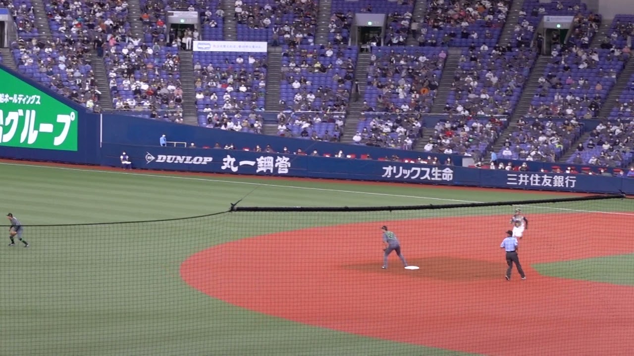 2021年8月21日(土)京セラドーム オリックス対西武 3回表1アウトランナーなし 宮城投手の3球目 真ん中スライダー125km/h センターへの当たりをスピードを緩めず二塁に滑り込んでセーフ Hokkaido Nippon-Ham Fighters北海道日本ハムファイターズ平沼翔太 NPBHUB.COM | The Fanbase of Nippon Baseball & Nippon Professional Baseball