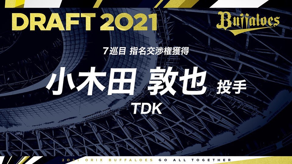 10月11日(月)、東京都内で2021年度プロ野球ドラフト会議が行なわれ、オリックス・バファローズは以下選手の契約交渉権を獲得いたしました。 #プロ野球ドラフト会議 #7巡目 #小木田敦也 選手 #TDK #ドラフト会議 #Bs2021 #buffaloes #baseball #ORIX #プロ野球 7巡目baseballBs2021buffaloesNPB Pacific LeagueOfficial MediaORIXORIX BuffaloesORIX Buffaloes Official MediaTDKオリックス・バファローズドラフト会議 プロ野球プロ野球ドラフト会議小木田敦也 NPBHUB.COM | The Fanbase of Nippon Baseball & Nippon Professional Baseball