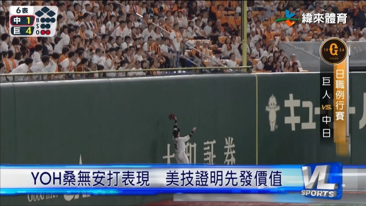 前場比賽靠著對手再見失誤贏球的讀賣巨人,持續在主場迎戰中日龍,而咱們的YOH桑陽岱鋼,是以先發右外野手之姿擔任開路先發,也是本季首度以第一棒出賽。
