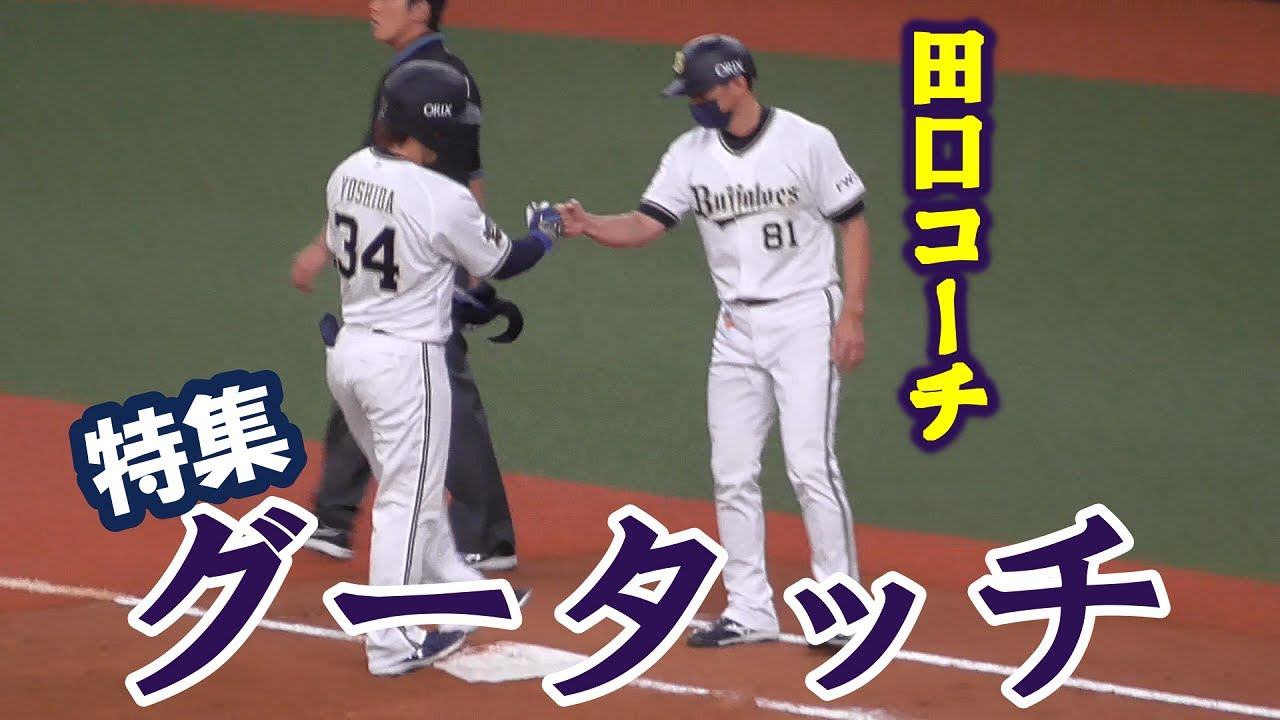 ヒットを打った打者と1塁ランナーコーチを務めている田口コーチとのグータッチを全て集めた動画です。
