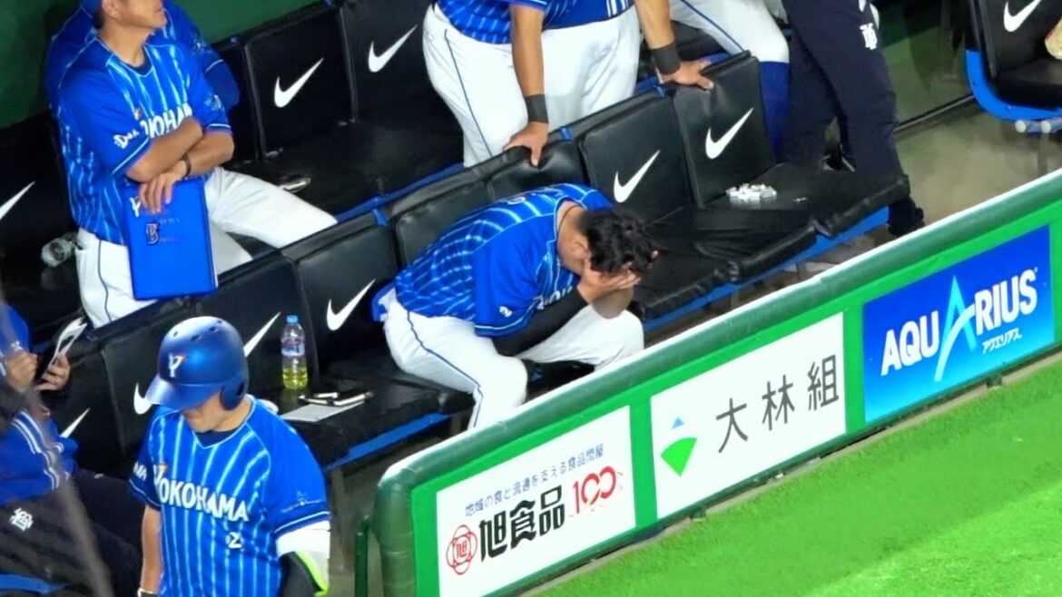 明日は勝つぞ!ベンチで悔しさを露わにする佐野恵太。キャプテン明日は頼みます!2023/05/24 横浜DeNAベイスターズ