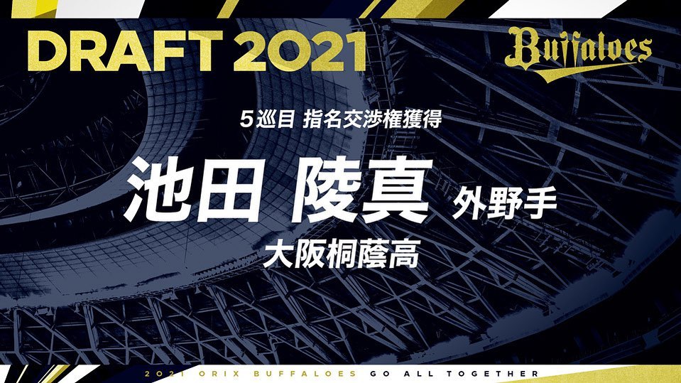 10月11日(月)、東京都内で2021年度プロ野球ドラフト会議が行なわれ、オリックス・バファローズは以下選手の契約交渉権を獲得いたしました。 #プロ野球ドラフト会議 #5巡目 #池田陵真 選手 #大阪桐蔭高 #ドラフト会議 #Bs2021 #buffaloes #baseball #ORIX #プロ野球 5巡目baseballBs2021buffaloesNPB Pacific LeagueOfficial MediaORIXORIX BuffaloesORIX Buffaloes Official Mediaオリックス・バファローズドラフト会議 プロ野球プロ野球ドラフト会議大阪桐蔭高池田陵真 NPBHUB.COM | The Fanbase of Nippon Baseball & Nippon Professional Baseball