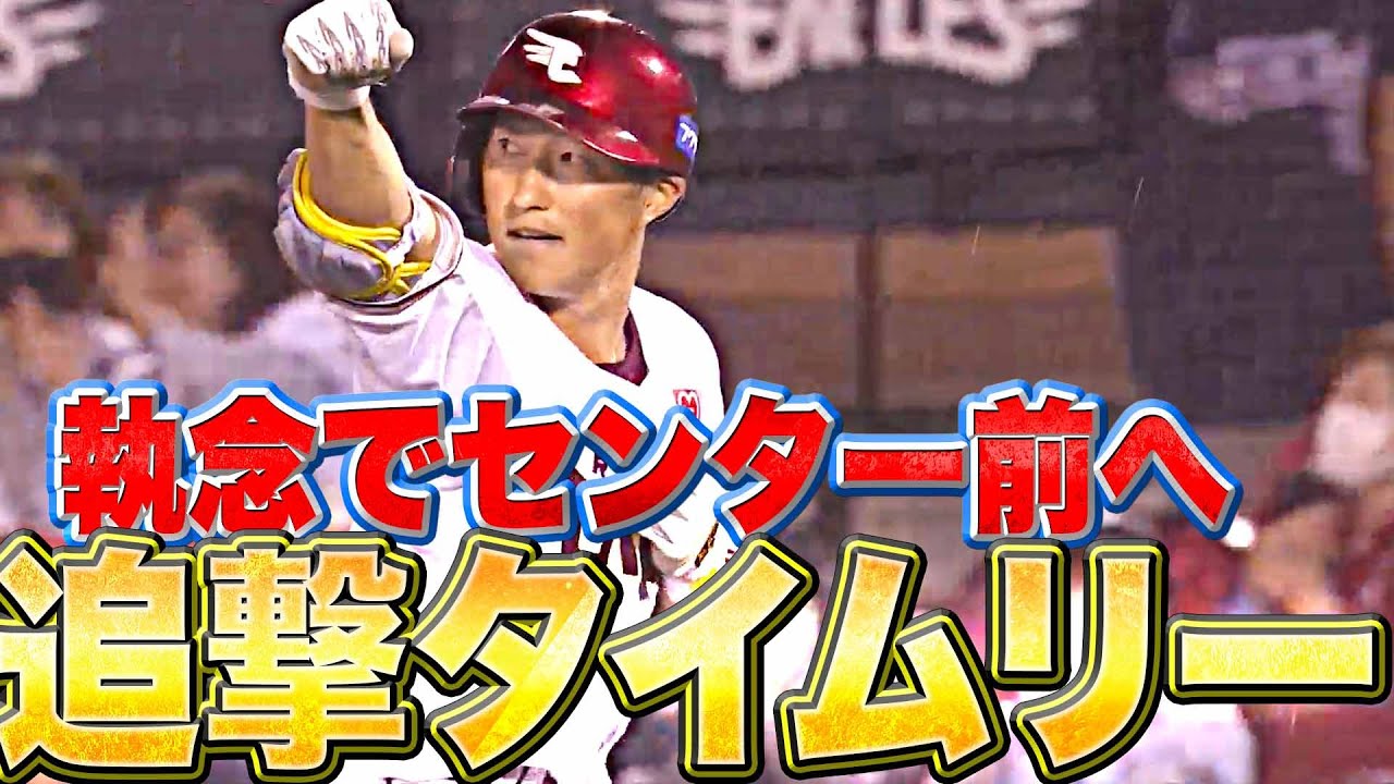3点ビハインドの場面。打席に立った東北楽天・小深田大翔が執念のセンター前2点タイムリー!! コブちゃんの追撃打で2対3とし、1点差に詰め寄る!!
