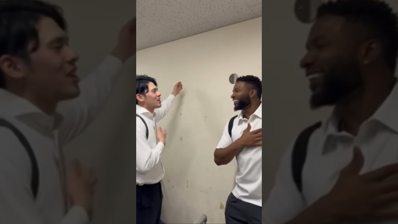 Chiba-Lotte-Marines: 自身の応援歌を歌い、陽気なポランコ選手と一緒にノリノリで歌う佐々木朗希投手