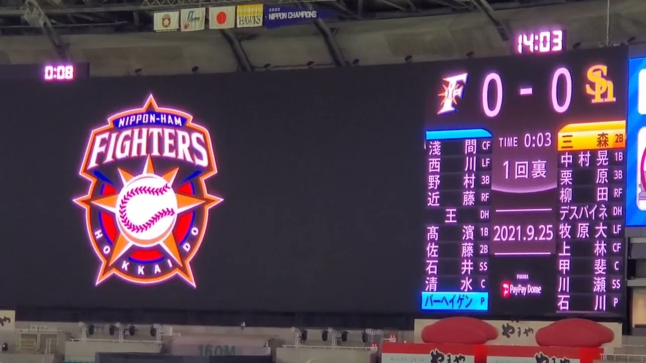 20210925 北海道日本ハムファイターズの守備位置シート紹介 1回ウラ ビジターチーム 先発はドリュー・バーヘイゲン@福岡PayPayドーム・内野1塁側
