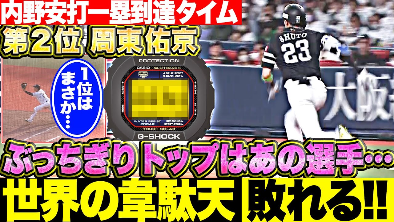 セーフティーバントを除く、1塁到達タイムのTOP5をG-SHOCKの協力のもと計測! パ・リーグの最速王は果たして誰なのか。ぜひ予想しながらご覧ください!!