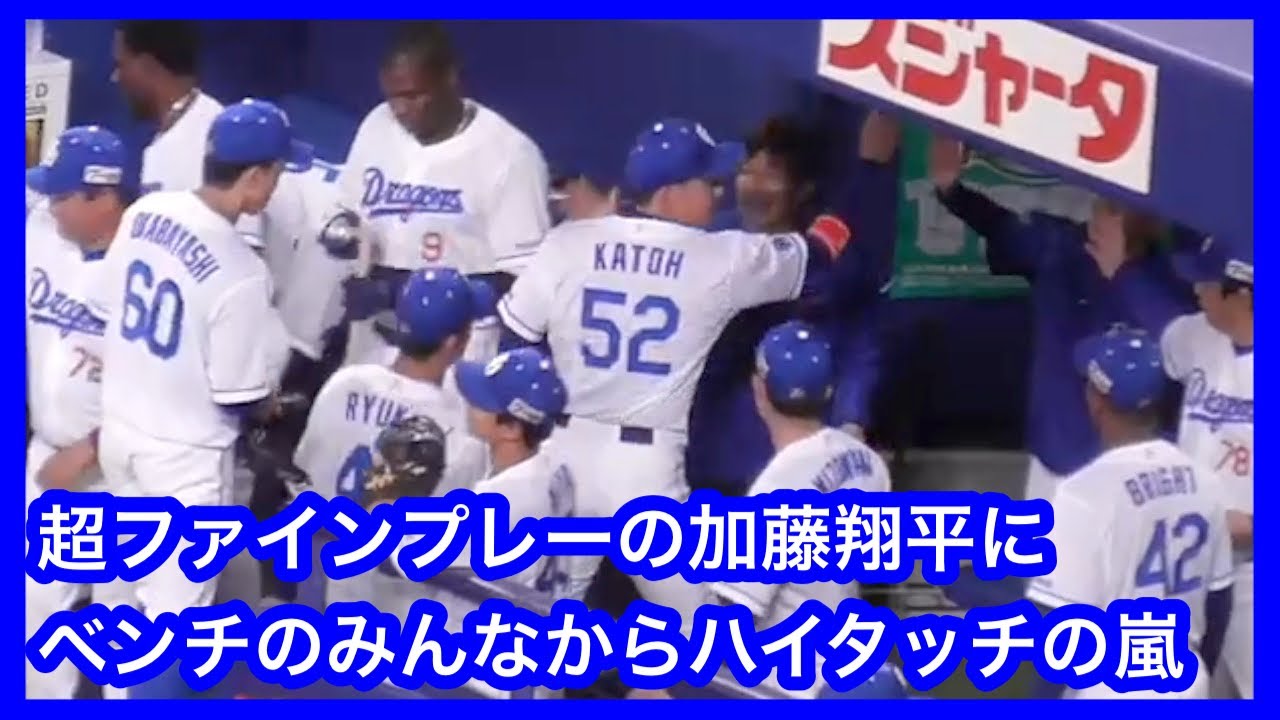 超ファインプレーの加藤翔平 ベンチでみんなからハイタッチの嵐 中日ドラゴンズVS阪神タイガース 2023.4.21 #加藤翔平 Chiba Lotte Marines加藤翔平千葉ロッテマリーンズ NPBHUB.COM | The Fanbase of Nippon Baseball & Nippon Professional Baseball