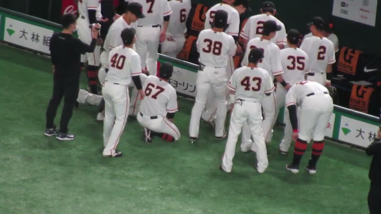 【円陣】菊田拡和の声出しと大城卓三に脇腹くすぐられそうになりコケる山瀬慎之助〜2023年5月13日読売ジャイアンツ対 広島カープ