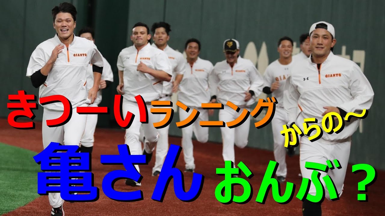 3月19日の東京ドーム練習📹野手陣のランニングを撮影📹ランニングメニューが終わったと思えば亀井善行選手がカメラに向かって「おんぶ!おんぶ!」