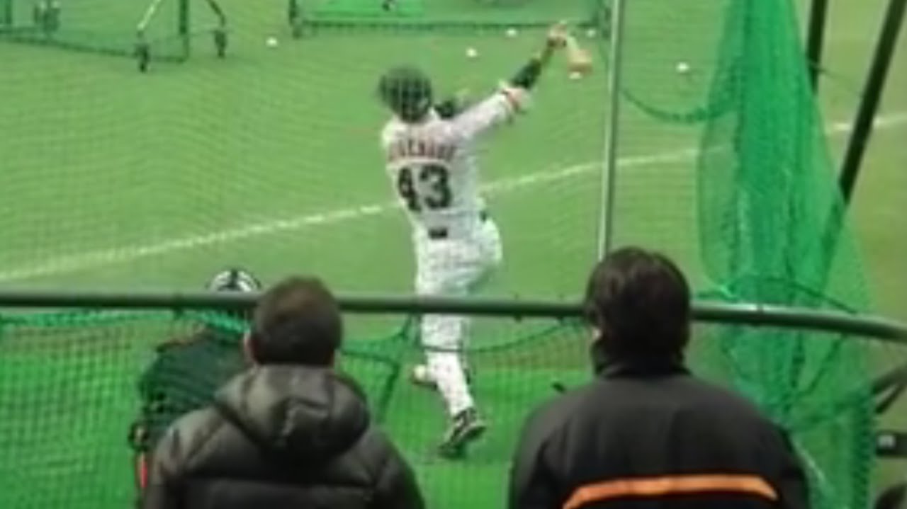 巨人 ルーキー 重信慎之介 レジェンド 松井秀喜の前でバッティングを披露