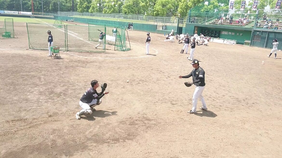 #栃木ゴールデンブレーブス #22 #内山太嗣 捕手 #栃木ゴールデンブレーブス #27 #八木健史 捕手兼バッテリーコーチ 試合前キャッチャー練習 2018年4月29日@北本市民球場(埼玉県北本市) vs武蔵ヒートベアーズ( #BCリーグ 公式戦) Tokyo Yakult Swallowsキャッチャー練習内山太嗣東京ヤクルトスワローズ栃木ゴールデンブレーブス NPBHUB.COM | The Fanbase of Nippon Baseball & Nippon Professional Baseball