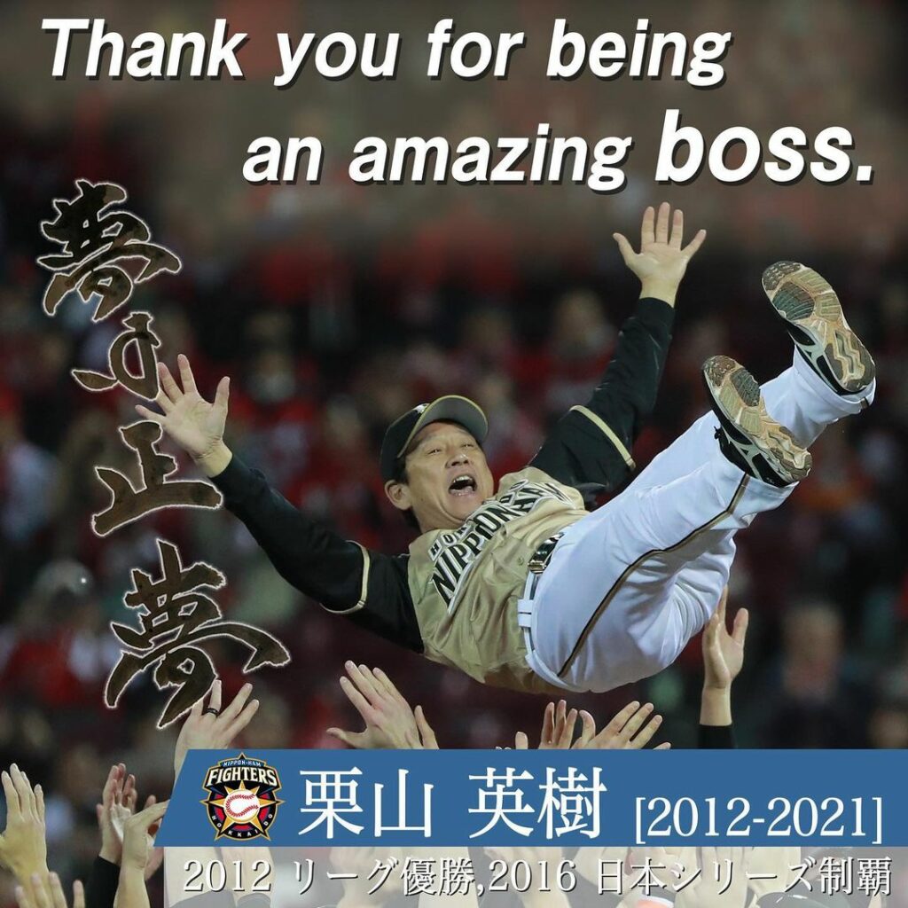 北海道日本ハムファイターズの栗山英樹監督が今シーズン限りで退任することが決まりましたので、お知らせいたします。栗山監督は今シーズン全日程終了まで指揮をとり、退任会見はシーズン終了後に行います。 Thank you for being an amazing boss. (※画像内容の変更につき再投稿になります) #栗山英樹 Hokkaido Nippon-Ham Fighters Official MediaNPB Pacific LeagueOfficial Media NPBHUB.COM | The Fanbase of Nippon Baseball & Nippon Professional Baseball