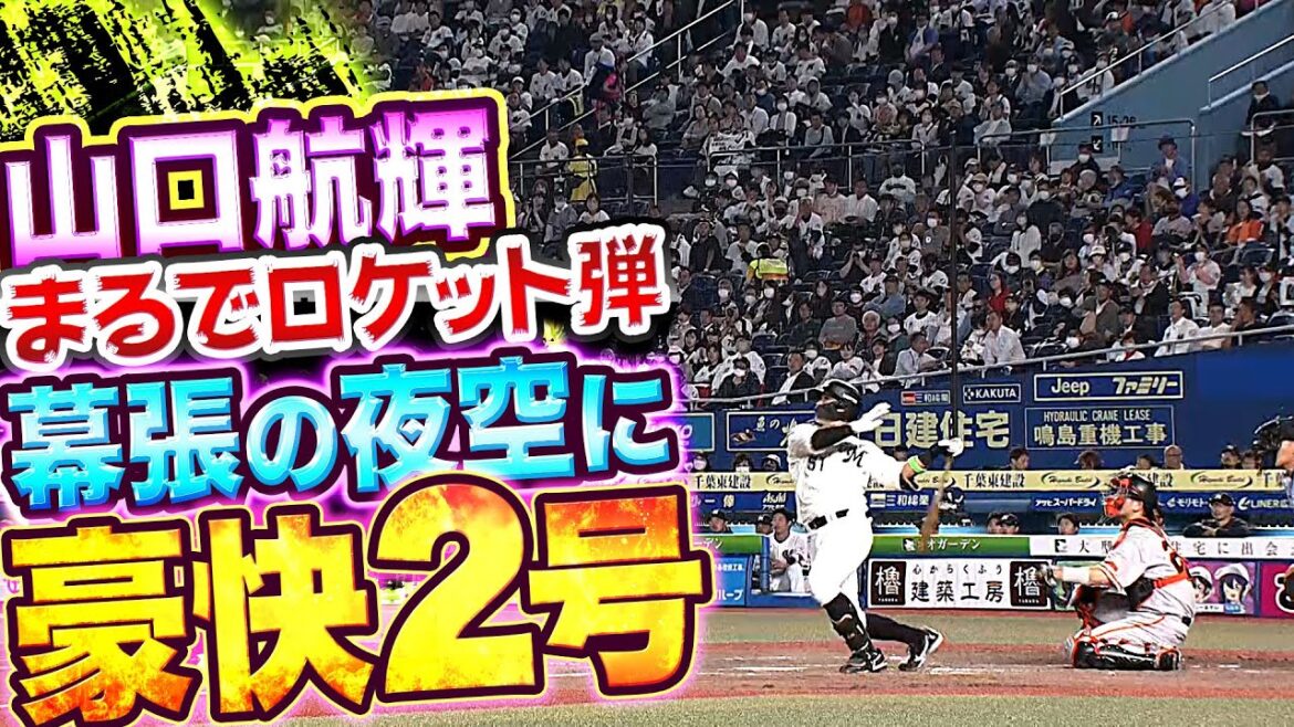 全身で振り抜いた打球がまるでロケット砲であるかのような勢いでスタンドに突き刺さる。千葉ロッテ・山口航輝が4回裏、今季2号ホームランを幕張の夜空に描いた!!