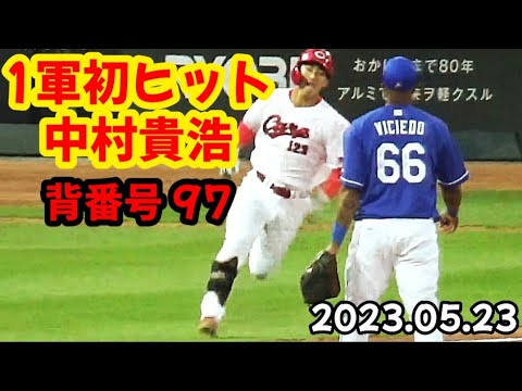 カープ中村貴浩、ドラゴンズ福谷浩司から1軍初ヒットの瞬間!【打席フル】 ~ 育成上がり、背番号97