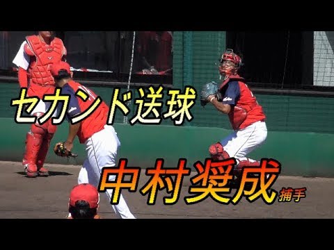 【中村奨成捕手春季キャンプ1軍決定!】中村奨成・白濱裕太・船越涼太(引退)3捕手 セカンド送球!