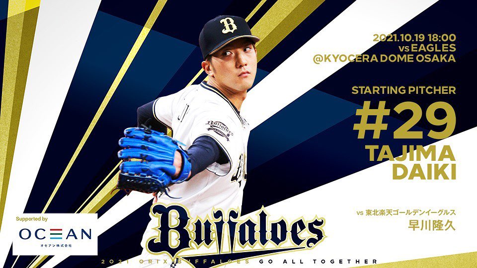 #10月19日 #楽天戦 #予告先発投手 #田嶋大樹 #京セラドーム大阪 #18時00分試合開始 #Bs2021 #buffaloes #baseball #ORIX #プロ野球 10月19日18時00分試合開始baseballBs2021buffaloesNPB Pacific LeagueOfficial MediaORIXORIX BuffaloesORIX Buffaloes Official Mediaオリックス・バファローズプロ野球予告先発投手京セラドーム大阪楽天戦田嶋大樹 NPBHUB.COM | The Fanbase of Nippon Baseball & Nippon Professional Baseball
