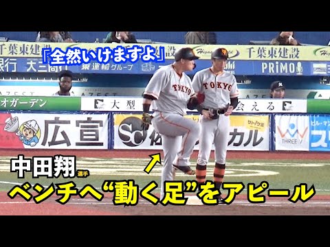 巨人中田翔選手、足を引き摺りながらも激走しホームへ生還!ベンチへ向かって動く足をアピール!巨人vsロッテ
