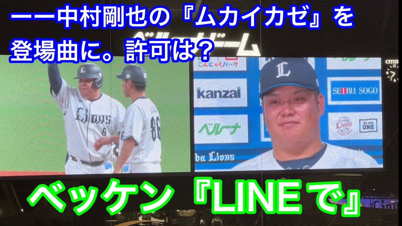 渡部健人が試合後のヒーローインタビューに登場。登場曲について問われ、「中村さんにLINEで“使わせていただきます”と送ると、