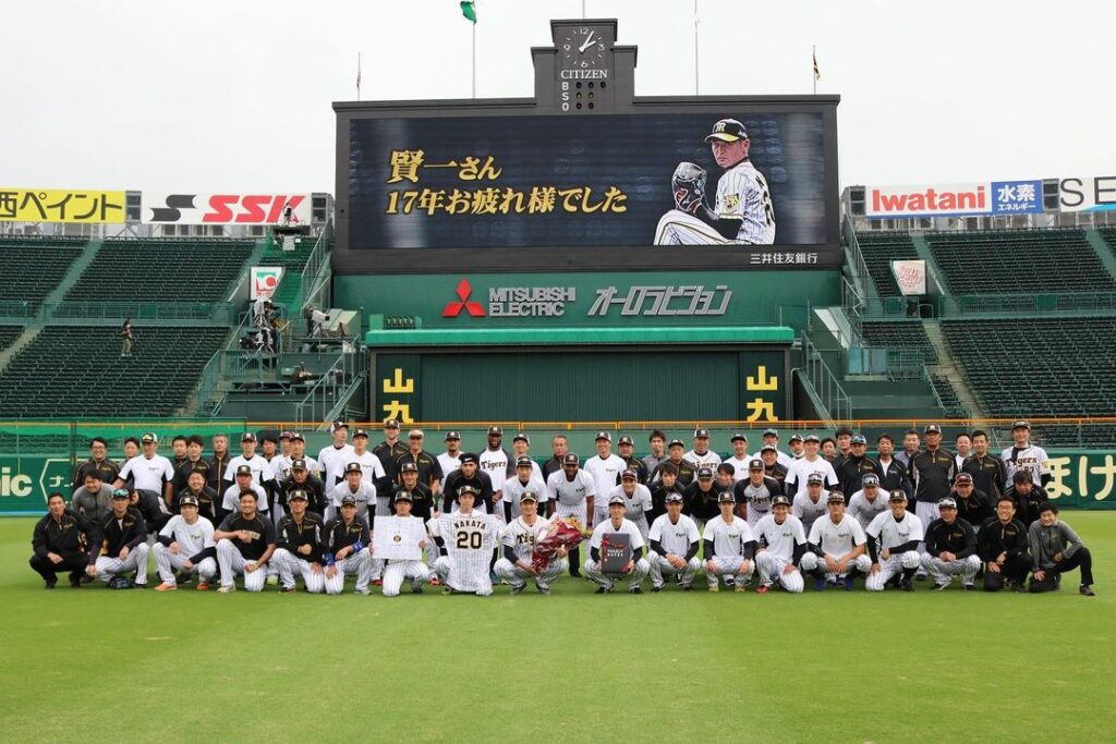 今日から甲子園でヤクルト戦です!練習前、中田選手へ花束や寄せ書きを贈呈し、記念撮影を行いました! #中田賢一 選手#記念撮影 #サプライズ#17年間お疲れ様でした !#阪神タイガース #挑超頂 17年間お疲れ様でしたHanshin TigersHanshin Tigers Official MediaNPB Central LeagueOfficial Mediaサプライズ中田賢一挑超頂記念撮影阪神タイガース NPBHUB.COM | The Fanbase of Nippon Baseball & Nippon Professional Baseball