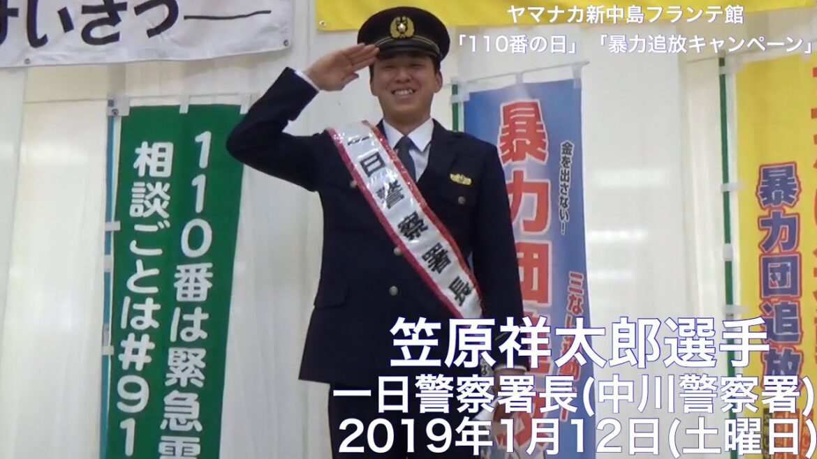 2019.1.12 笠原祥太郎 一日警察署長 「110番の日」「暴力追放キャンペーン」中川警察署 ヤマナカ新中島フランテ館