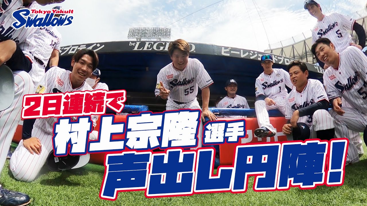 2023年6月4日(日)神宮球場での東北楽天ゴールデンイーグルス戦。試合前の燕陣声出しは今日も村上宗隆選手!