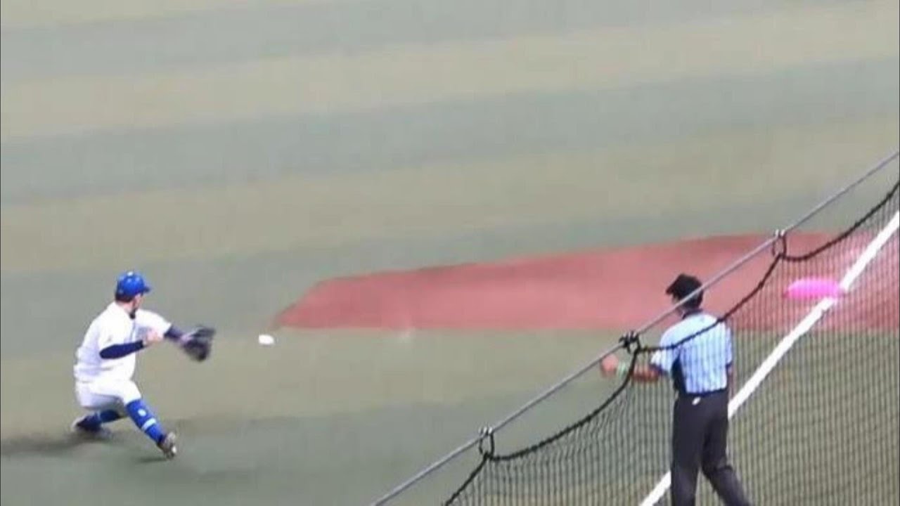 「少し鳥肌が立ちましたけど、何もないように捌いてますけど非常に難しい打球です。アンツーカーと芝生の間で、どういうふうに打球が変化をするか分からないですから。打った瞬間から少し半身になって、下がりながらボールを下から見ながら逆シングルで捕って、それからファーストに投げる。一連の流れとしては、ロスなく非常にスムーズですね。ああいうプレーを、もしサードに自分が入ったら・・・って、石川選手も今の動きをちゃんと見ておいてほしいですね」