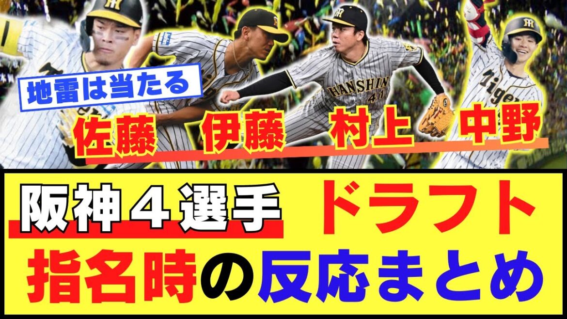 佐藤輝明選手(1位)・伊藤将司選手(2位)・村上頌樹選手(5位)・中野拓夢選手(6位)のドラフト時の反応をまとめました。