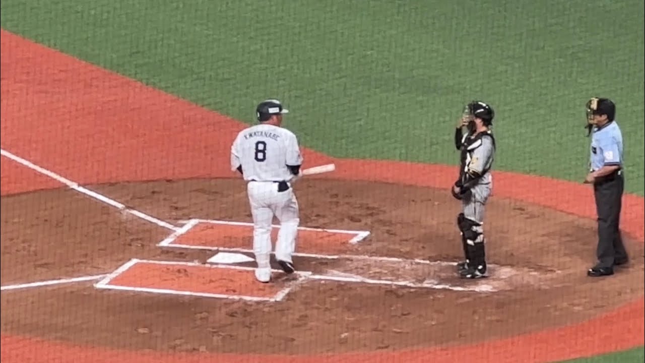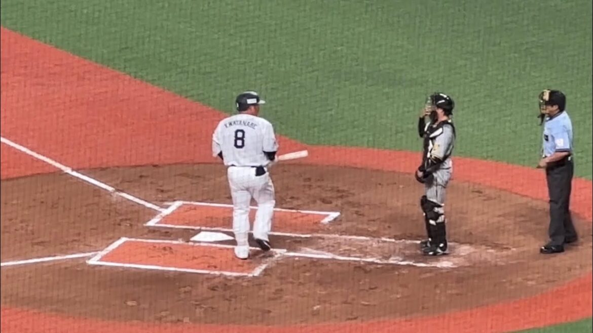 4番 渡部健人 変化球をおっ付ける形で先制センター前タイムリー!