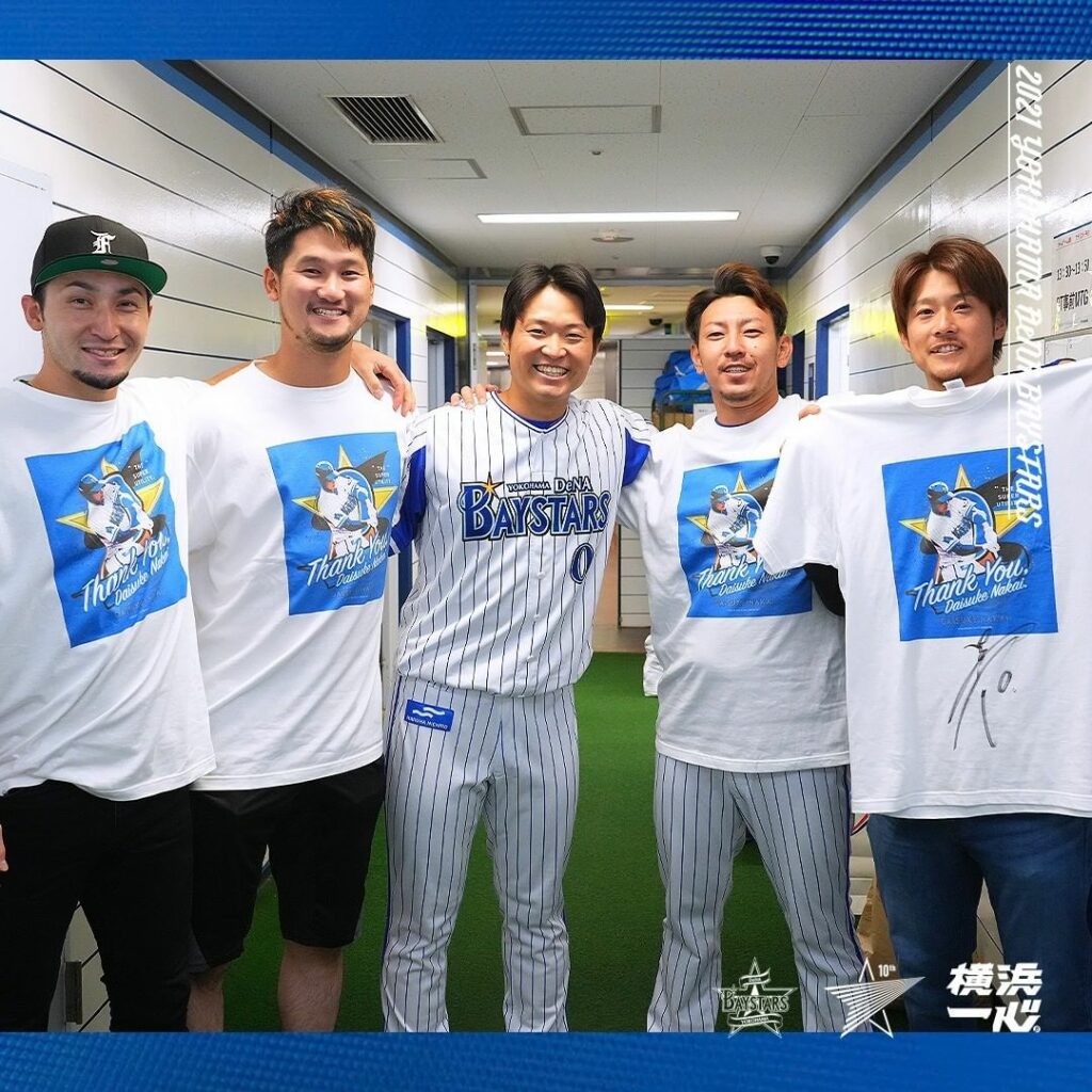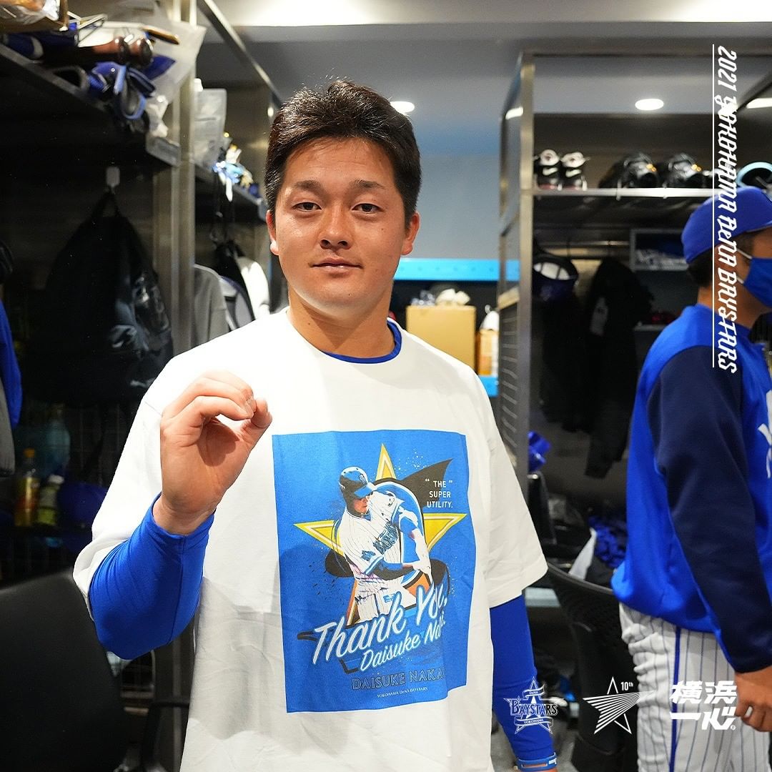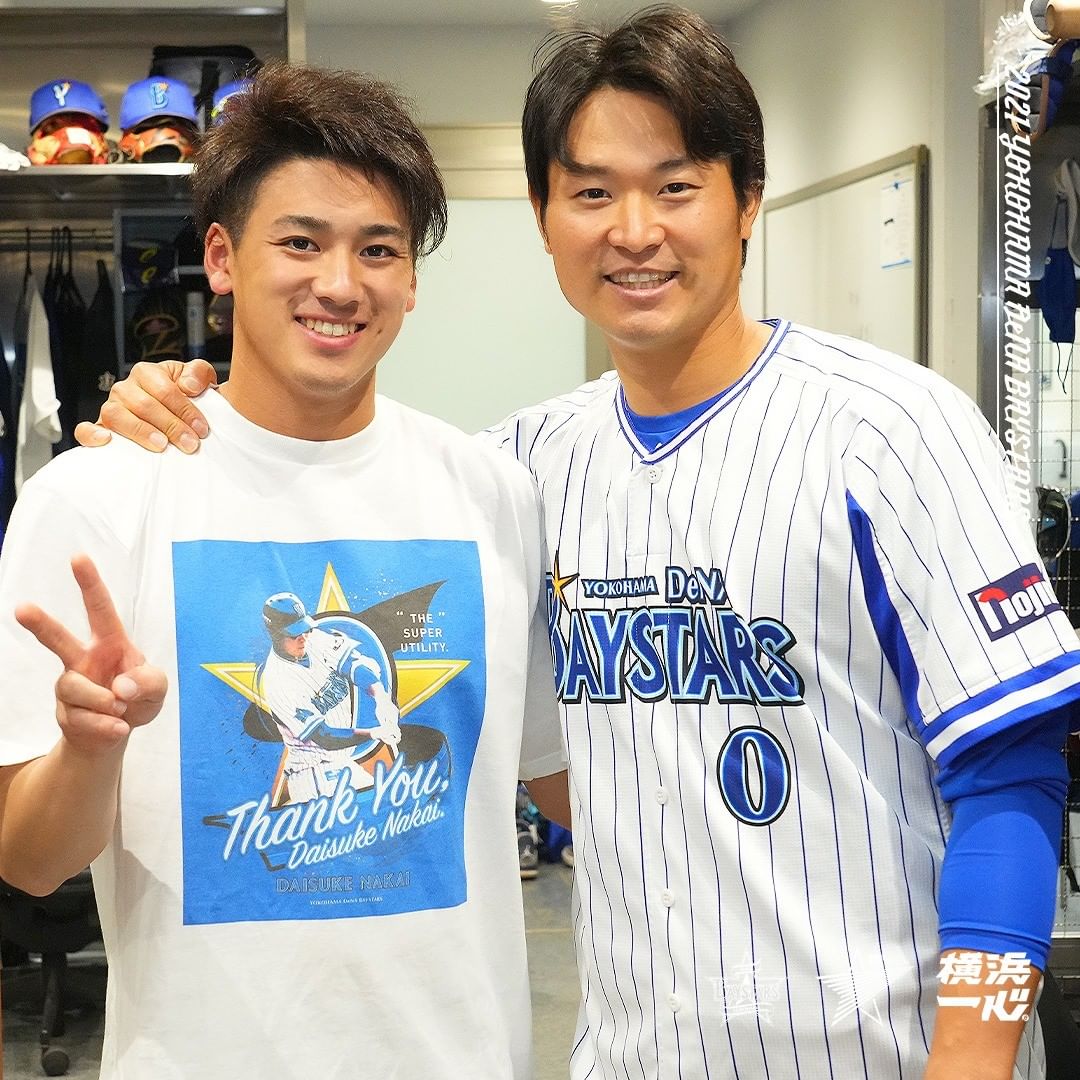 .セレモニー中、 #中井大介 選手がグラウンドを一周している間に、選手たちは急いで中井選手のTシャツに早着替え✨セレモニー後はロッカーで記念撮影もしました📸.@de0.daisuke#thankyouDAISUKENAKAI#ロッカーでのあれこれ#光さんと嶺井さんも駆けつけました#baystars baystarsNPB Central LeagueOfficial MediathankyouDAISUKENAKAIYOKOHAMA DeNA BAYSTARSYOKOHAMA DeNA BAYSTARS Official Mediaロッカーでのあれこれ中井大介光さんと嶺井さんも駆けつけました横浜DeNAベイスターズ NPBHUB.COM | The Fanbase of Nippon Baseball & Nippon Professional Baseball