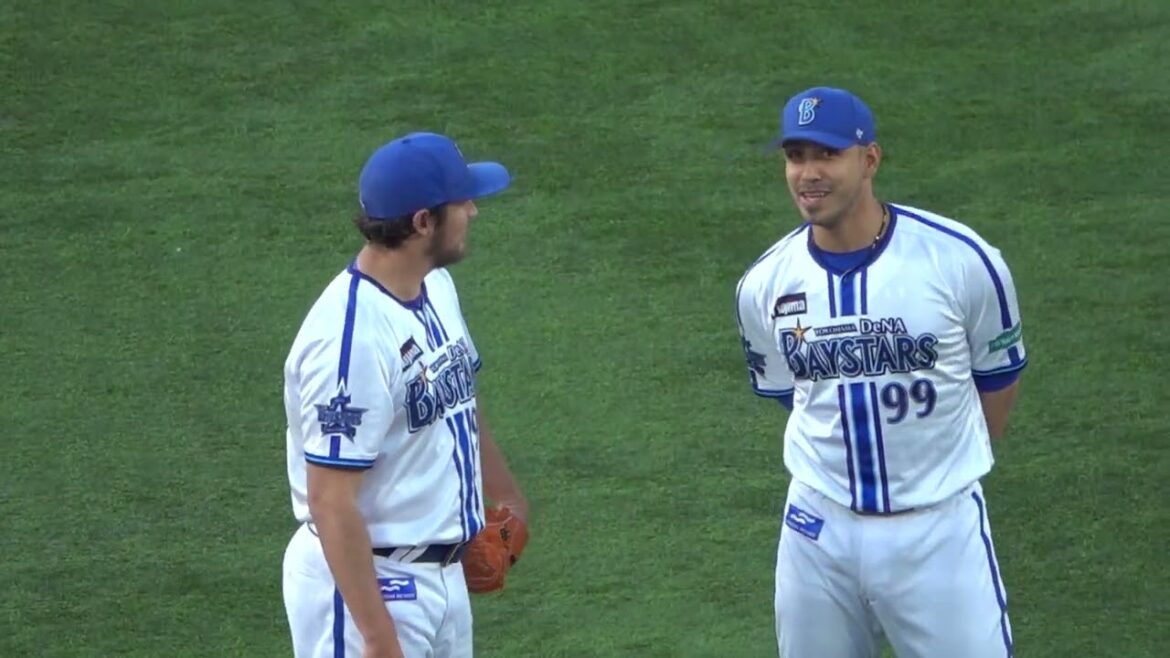 ちょっとした間でバウアーを気にかけて会話に行くソト 2023/05/16 横浜DeNAベイスターズ