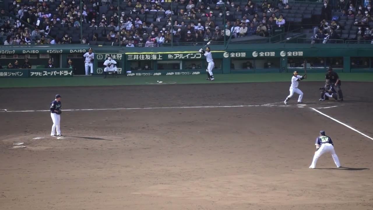 1アウト 1塁 島田 1-1より(走者:佐藤輝)ショートフライ