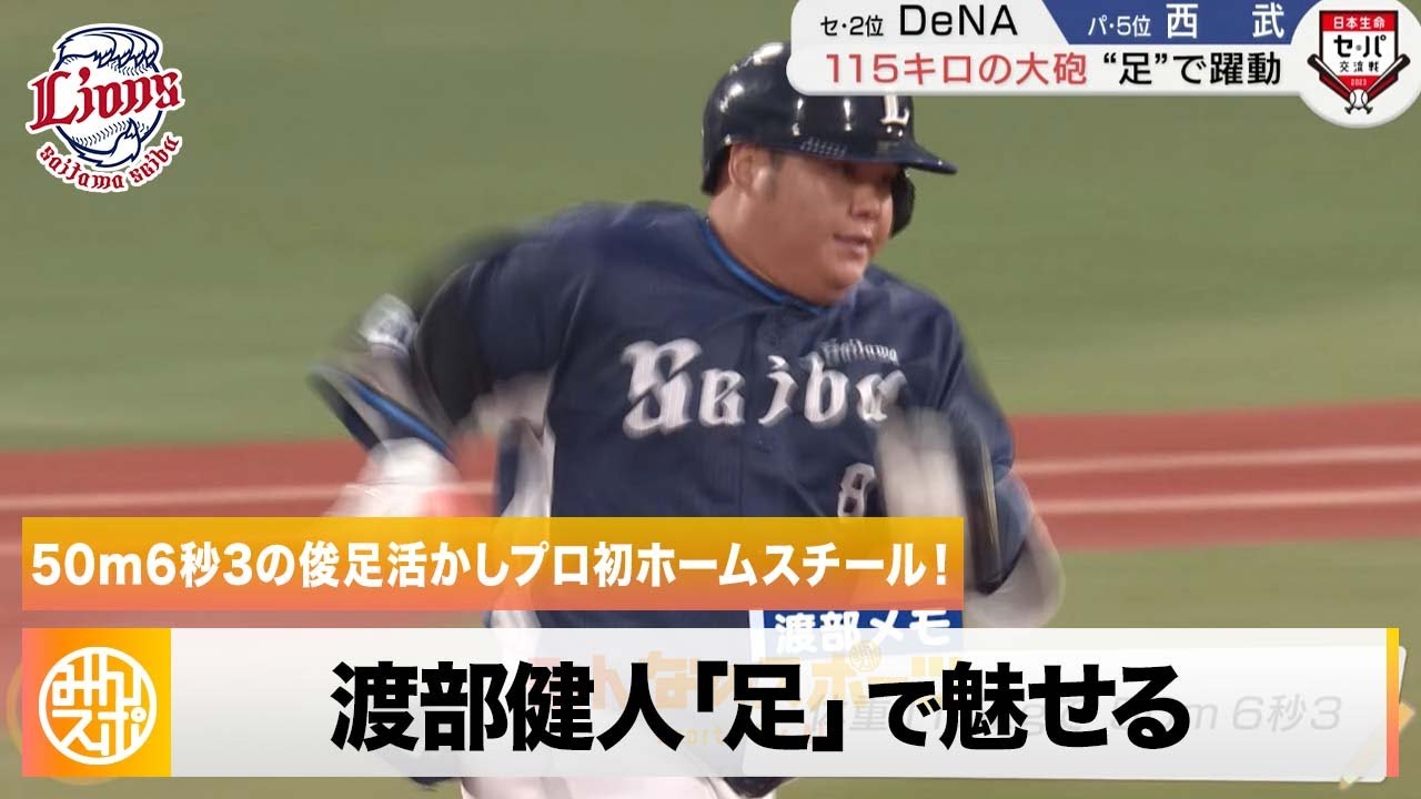 西武は2020年のドラフト1位体重115キロの渡部健人(24)が躍動する。巨体ながら50メートル6秒3という俊足をいかしてタイムリー2ベース。さらにその後、3塁に進んだ渡部。1塁ランナーの盗塁の間にプロ初となるホームスチールを決めた。