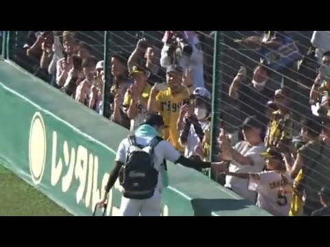 2023.6.3(土) 阪神甲子園球場で行われた 阪神タイガースvs千葉ロッテマリーンズ1回戦(交流戦) 試合前、日本の若きエース佐々木朗希が試合前ファンサービスをする。 #佐々木朗希Chiba Lotte Marines千葉ロッテマリーンズ NPBHUB.COM | The Fanbase of Nippon Baseball & Nippon Professional Baseball
