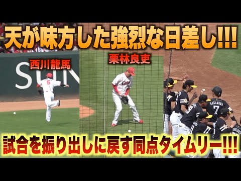 強烈な日差しで西川龍馬と栗林良吏が落球!近藤健介がすかさずタイムリーを放ち試合を振り出しへ!#広島#カープ#福岡#ソフトバンク#ホークス