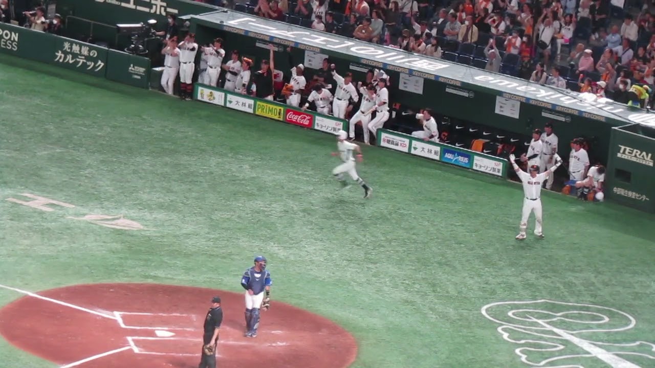 岡本和真ホームランで感情出して喜ぶ坂本勇人や丸佳浩の先輩たちと嬉しそうにタッチする中山礼都が可愛い 2023年5月21日 読売ジャイアンツ対 中日ドラゴンズ