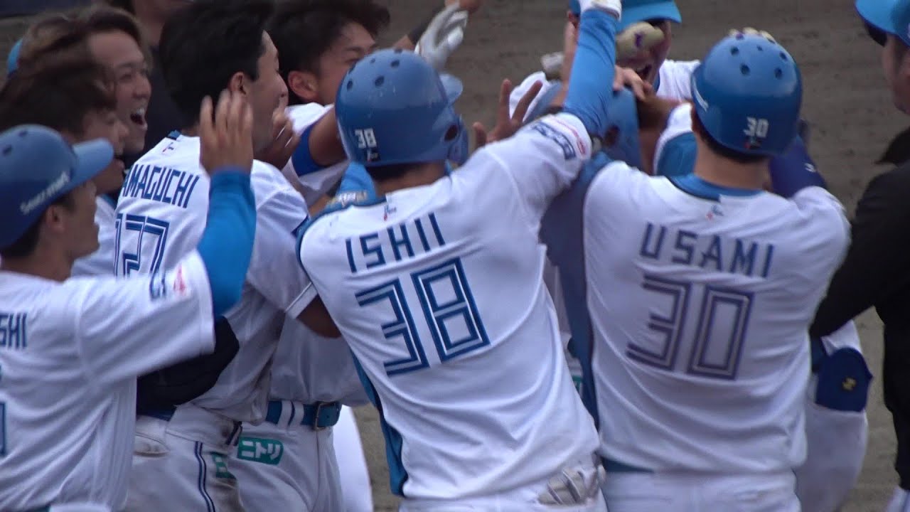 2023年6月4日ファイターズ鎌ケ谷スタジアム 北海道日本ハムファイターズ対読売ジャイアンツ イースタンリーグ公式戦 郡拓也選手 10回裏2死一二塁レフトスタンドへサヨナラ3ランホームラン 日本ハム6対3勝利 #北海道日本ハムファイターズ #郡拓也 Hokkaido Nippon-Ham Fighters北海道日本ハムファイターズ郡拓也 NPBHUB.COM | The Fanbase of Nippon Baseball & Nippon Professional Baseball