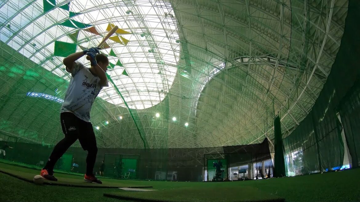 北條史也選手のバッティング練習中に少しだけカメラが潜入。