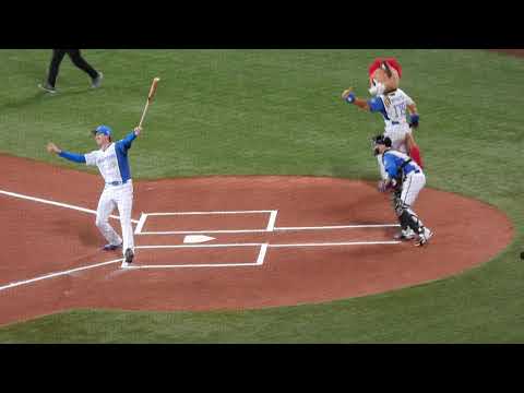 20230610【交流戦対タイガース】試合前のイベントで上沢直之がバッターで登場